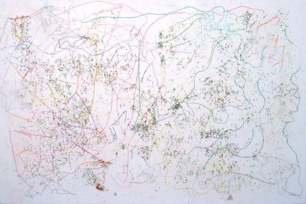 pen, pencil, food colouring, rice, clear co-polymer emulsion