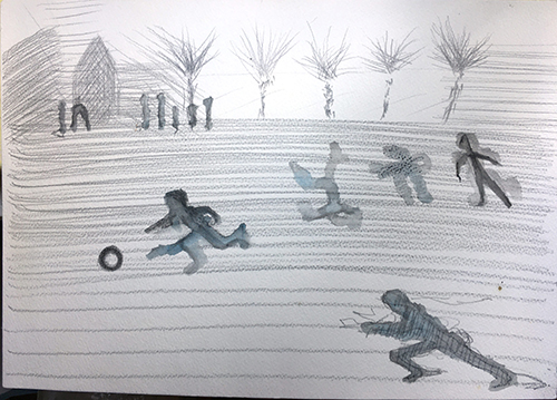 | For the fallen, even if it's from a cherry tree | Dinner lady sketch from memory of seeing children play on a winter's day 2006 | |||