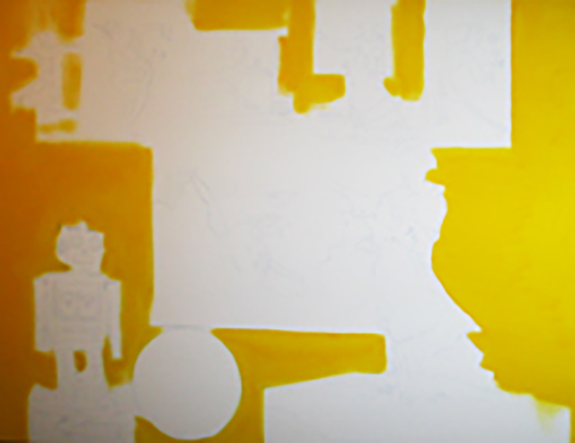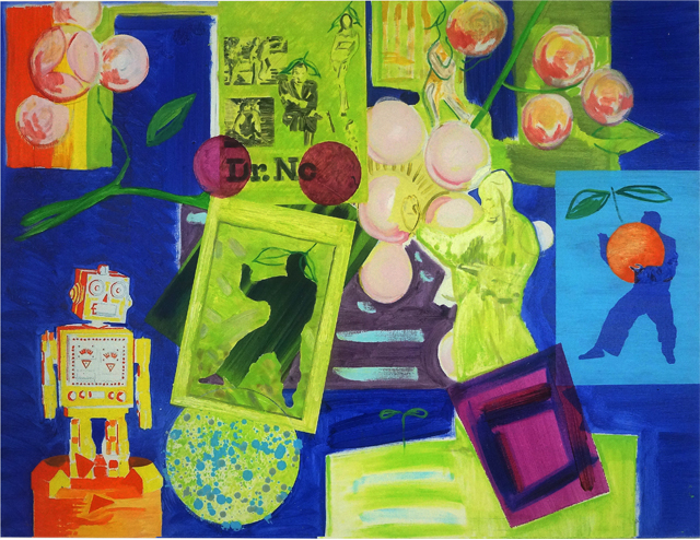 PAINTING: The theme of FUNDAMENTAL STRUCTURES, a basic recurring foundation for a series of paintings, referencing the theatricality of modern life. Consisting of a stage platform, standing figure, circle, smaller robotic figure and a series of hanging flats along the top edge. Sometimes flipped over from Right to Left, to mix it up, and try stuff out. With Matisse, Arp, De Chirico references, and paying homage to Eon Productions, producers of James Bond and also Gone with the Wind, the 1939 American epic historical romance film adapted from the 1936 novel by Margaret Mitchell. The film was produced by David O. Selznick of Selznick International Pictures and directed by Victor Fleming. | |