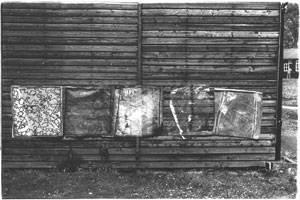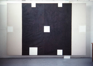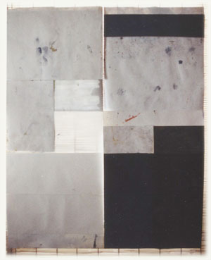 Crumplin invited the visiting lecturers Ð Alan Green Ð and his seeminly blank monochromatic canvases executed in meticulous detail, - attending to every nuance of surface texture and manual direction, brimming with content if you look carefully; Joel Fisher with his paper-making process leading to imaginative extrapolations from a single horse hair left on the paper by the drying blanket Ð a vast bank of potential, like his own cosmos in microcosm PICTURE.   If painting had no preconcieved image to show then what was it going to show? Joel was inspirational, and his work opened the doors onto an art whose strict strategies permitted leaps of the imagination. Less definitely was more.