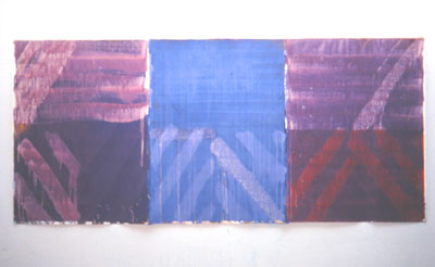 So to recap, Art Historically, I was studying Modernism from Henri Rousseau, Kandinsky (Point and Line to Plane) , Gaugin, to Frank Stella and Henri Micheau and the Tachists. (with a dash of Dada and Surrealism verging on the Absurdist).   I had a very clear idea of the painting as an object, with a flat surface, a non-illusionary space, but was looking very hard for an emotional hook into the matter of finding my own way of working. I was trying to see how to make paintings which did not go all the way to being sculptures and found some help in the French "Support/Surface" group who focused on deconstructing the stretcher. Richard Smith had been doing this since the 1970's. I also made painting tools, to try to automate the painting prcess. This attempt to strip out the personal from the work was to try to make it more accessible to the general viewer. There was a feeling that you should think about the viewer.