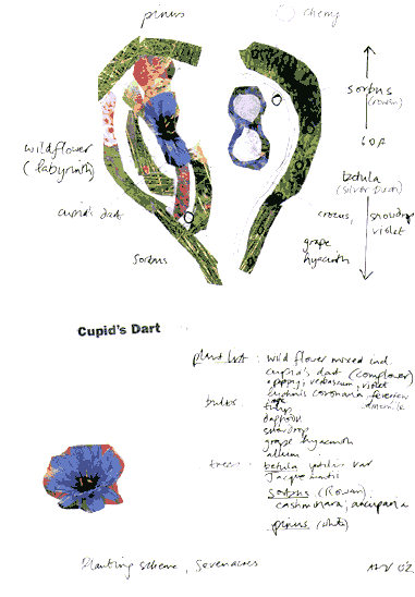 Medicinal garden at St Mary's Hospital - called Sylvacure. It includes Silvia and much planting with wavy lines of bulbs currently being investigated for use in mental health with flowers, such as muscari (grape hyacinth).